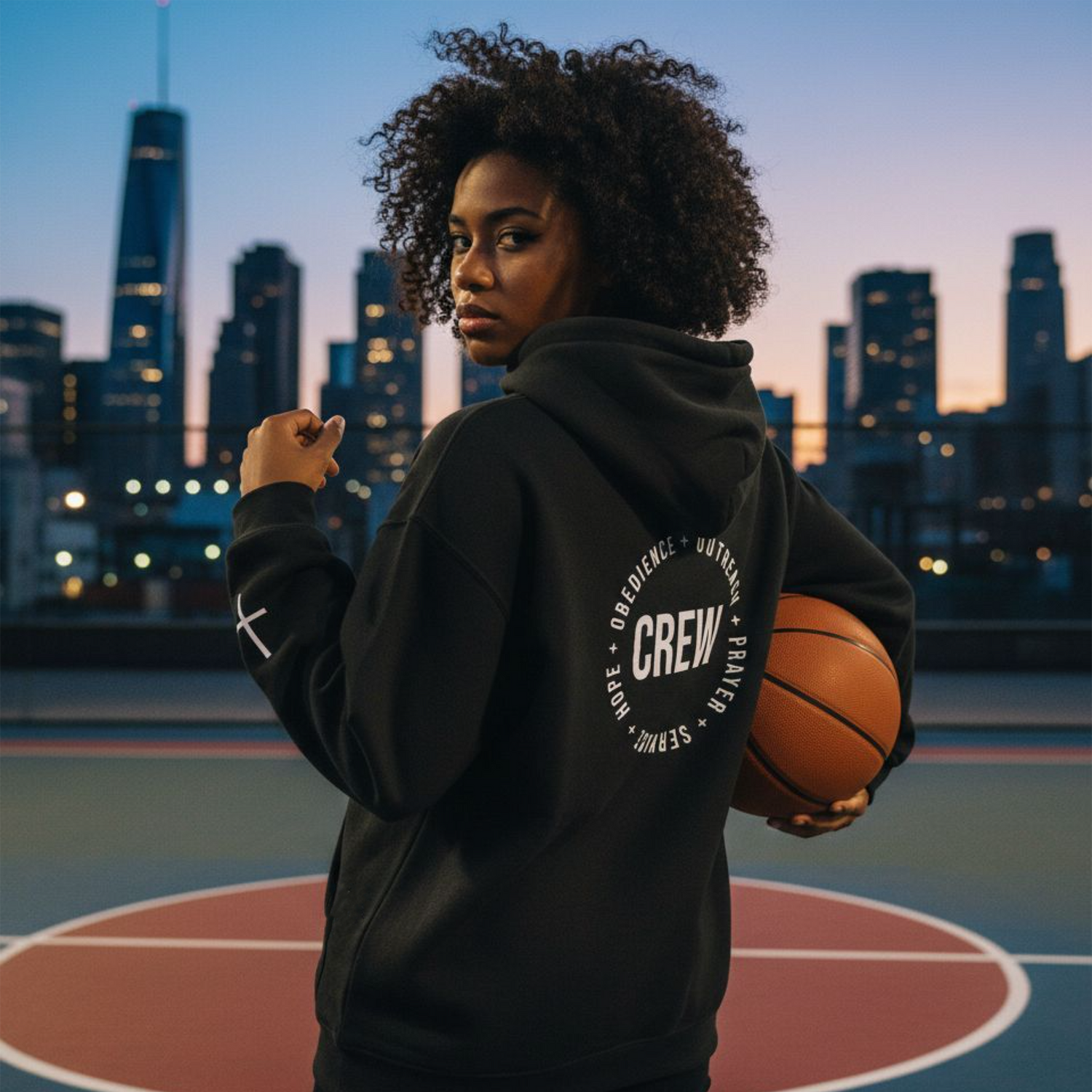 Unisex Hoops Crew Hoodie – Faith. Purpose. Community.